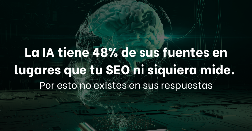 Un estudio de agosto 2024 reveló que solo el 52% de las fuentes que la IA cita provienen del top 10 de Google. El otro 48% viene de lugares que el SEO tradicional ni siquiera está midiendo. Lugares donde tu contenido probablemente no existe.